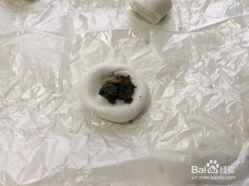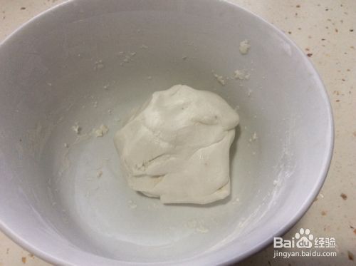 将糯米粉放入碗中,在糯米粉中加入适量的清水和成糯米面团。用手不断揉搓面团,增加糯米面团的粘性。
