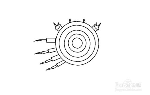 接下来是在螃蟹的2边,画上4只脚,每只小脚都由3段组成哦,有大腿、有小腿还有爪子。