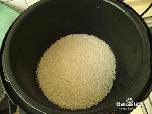 精选上好的大米。洗净放入电饭锅中,按照1:1的比例放入水。