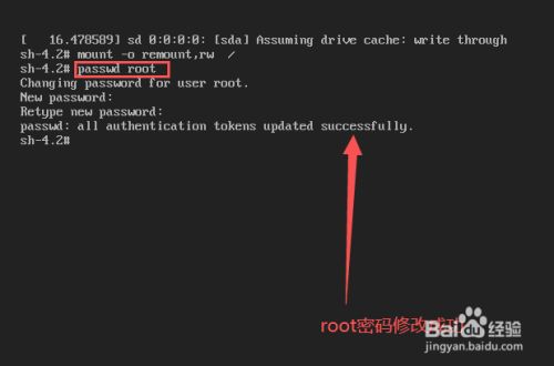然后输入命令:“passwd root”,回车;之后输入新密码回车,再次输入新密码,回车,至此新密码已经修改完成。