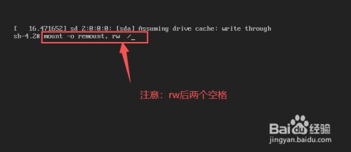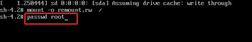 出现如下界面后,输入“mount –o remount,rw /”,然后回车