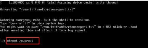 在打开的界面中输入命令:“chroot /sysroot”,然后回车