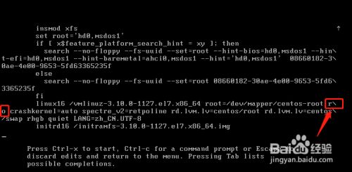修改完成后,如下图所示,然后按下Ctrl+x进入单用户模式