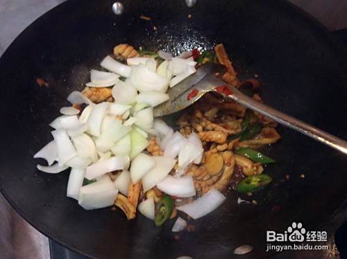 倒入洋葱翻炒,炒半分钟左右,炒断生就关火。