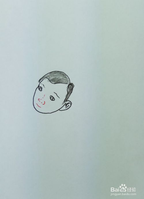在白纸上用线条和曲线画出小男孩的头部轮廓,并画出他的五官,头发部分,要注意小孩子的五官比例。