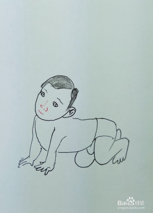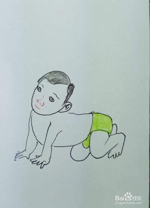 画出小男孩的另外一个胳膊,他已经学会做一个爬行小能手了。
