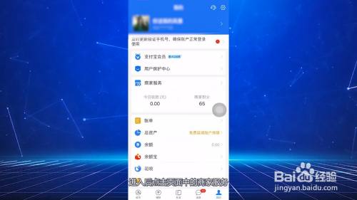 打开进入支付宝首页,点击右下角的我的图标,进入后点击页面中的商家服务。