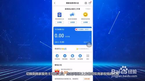 切换到商家服务主页面之后,点击页面左上方的领取商家收钱码礼包。