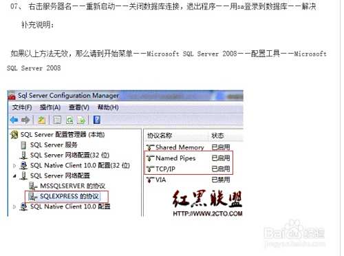 补充说明: 如果以上方法无效,那么请到开始菜单——Microsoft SQL Server 2008——配置工具——Microsoft SQL Server 2008