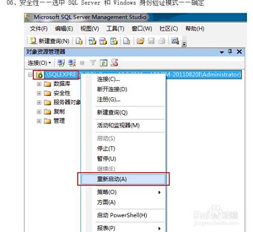 右击服务器名——重新启动——关闭数据库连接,退出程序——用sa登录到数据库——解决