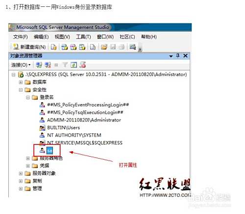 、打开数据库——用Windows身份登录数据库