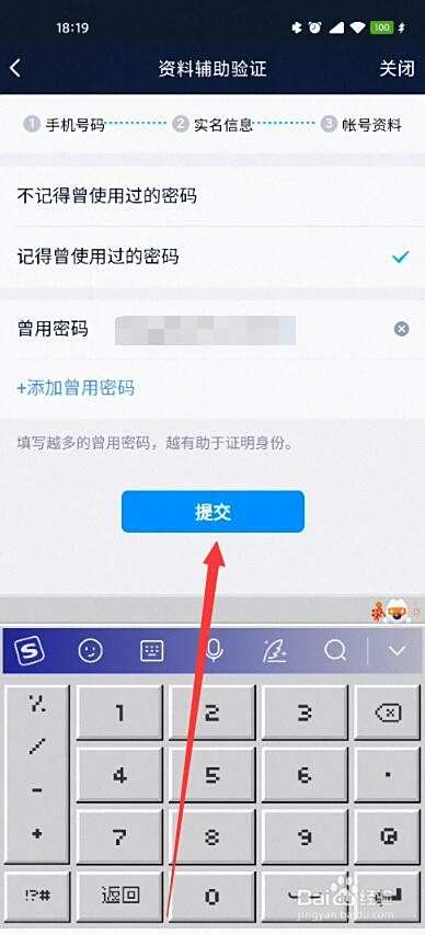填写帐号资料的时候选择还记得曾使用过的密码,输入密码,点击【提交】即可。