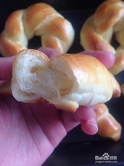 烤出来的面包 松软 面包不是很甜 因为怕发胖 所以糖放得少 糖可以根据个人口味添加
