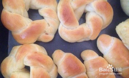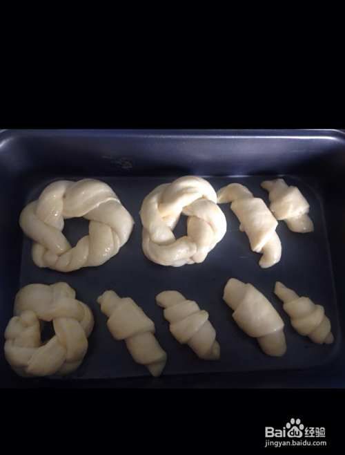 取出分成等份面团 用是湿毛巾盖住醒面15分钟 然后做成想要的面包形状 放进烤箱选择发酵 40度30分钟 发至原来面团2倍大