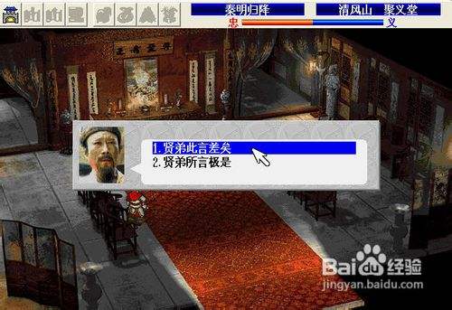 “秦明归降”选项一中,选“贤弟此言差矣”。