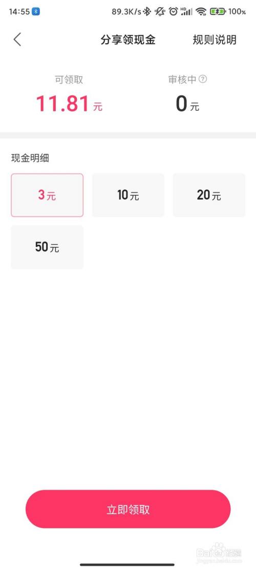 点击领现金,就会弹出3、10、20、50的选项可以提取只要金额达标分享给好友就可以提现到绑定的微信钱包或者支付宝钱包中。
