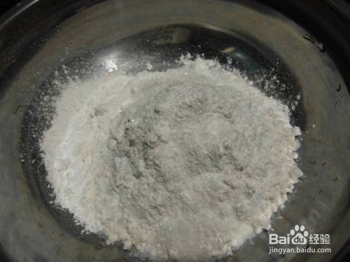 第四步,准备一个干净的容器,擦干水,放入少许糯米粉和粘米粉,再加入一勺白糖,适量开水,用筷子搅拌成小块。