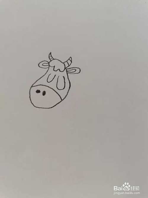 第三步,我们画奶牛的眼睛和鼻子。