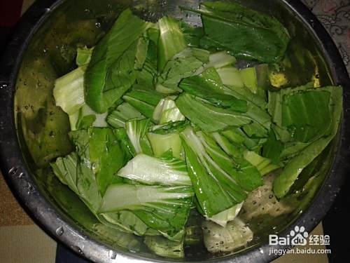 油菜洗净后切好备用。