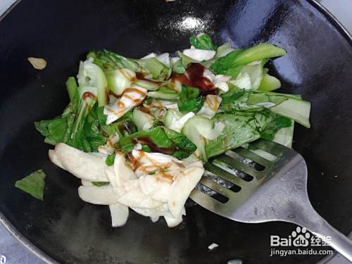 倒入适量酱油继续翻炒。