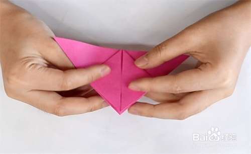 首先准备一张正方形彩纸,沿两条对角线、中线折出“米”字折痕。