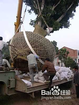 运输:大桂花吊装到车辆上要直立放置,土球四周用编织袋装原土(挖土球的老土)扎死,树冠用塑料膜裹严扎紧,防止运输过程中移动摇摆。