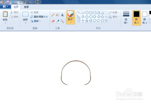 我们先画皮卡丘的头部,一个半圆加两个圆弧,两个圆弧表示他的腮帮子,是往两边凸出来的,
