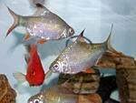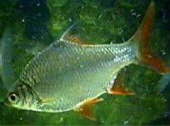 红鳍鲫,又名红鳍银鲫、红翅鲫、泰国鲫。原产地泰国,印尼苏门答腊、加里曼丹岛。鱼体纺锤形,在当地也为食用鱼。成色体色银光闪烁,背鳍、尾鳍鲜红色,尾鳍上还有红黑边纹。幼鱼体色比较逊色。由于体幅宽大,个体壮硕,群养于大型水族箱内,十分气派豪华。最适水温22-28℃,不择食,也吃水草、菜叶等。体很强壮,生长快,容易饲养。喜群游,行动快捷,不宜与小鱼混养。