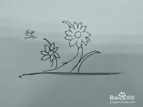 然后我们来为兰花画上下面的土地,一条线来表示,。如下图