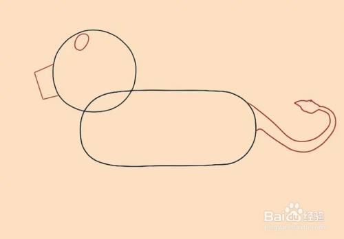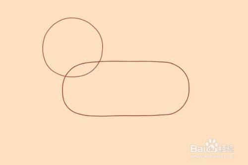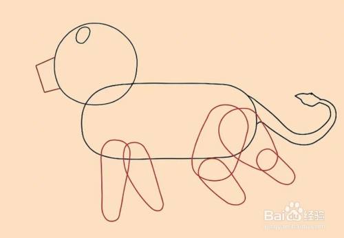 画一个圆形做狮子头。画一个长方形做狮子的身体。