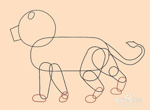用小的弧线仔细画出狮子的脚。