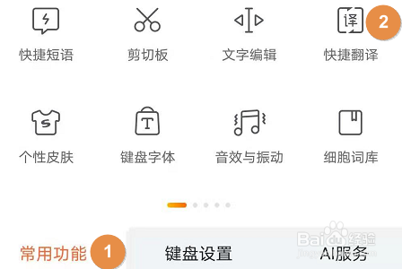 这样就能查看到输入法中带有的一些功能了,点击页面下方的“常用功能”即可看到“快捷翻译”;