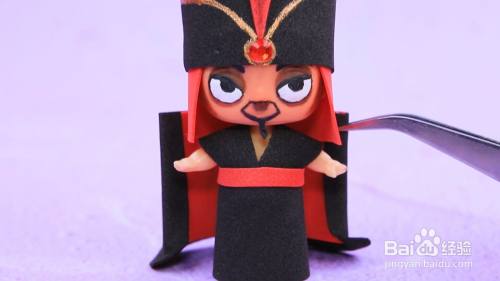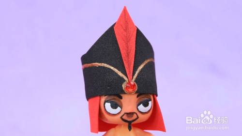 然后用黑色加红色的毛毡做出一个法师帽。