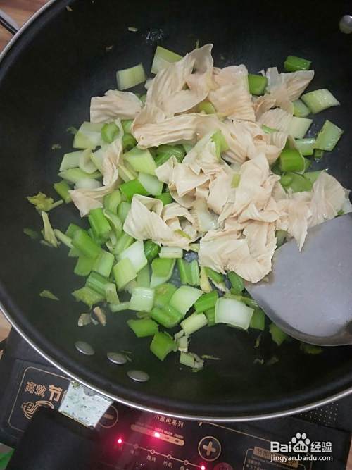 油热后,把切好的芹菜和姜丝一起放入锅中翻炒