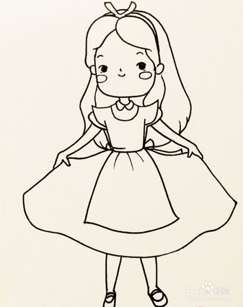 最后给爱丽丝上色,这样爱丽丝简笔画就完成啦!