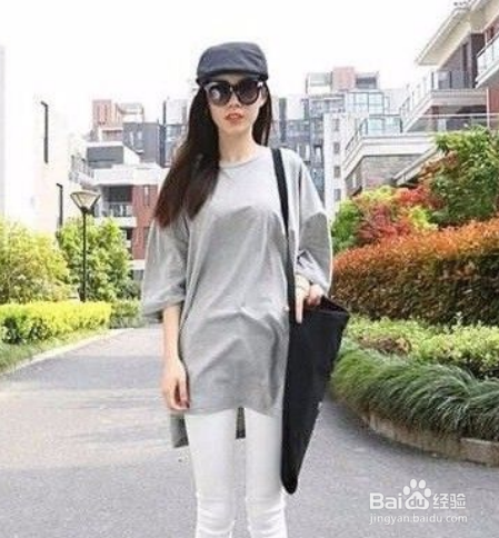 长款t恤搭配裤子方法,可通过搭配小脚牛仔裤、灰色打底裤、白色小脚裤、黑色运动裤来完成操作。