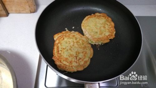 瓜丝饼在煎制过程中要来回翻转,直到瓜丝饼的两面都煎成金黄色