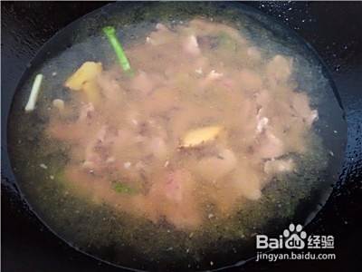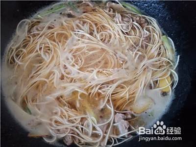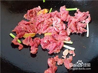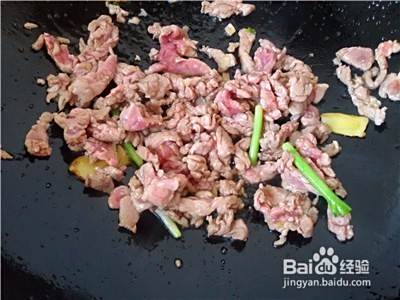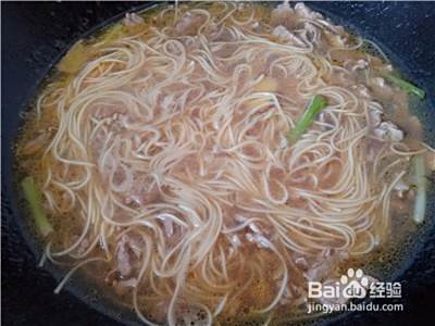 翻炒至肉丝发白,立即加水和适量的盐和老抽,大火烧开。