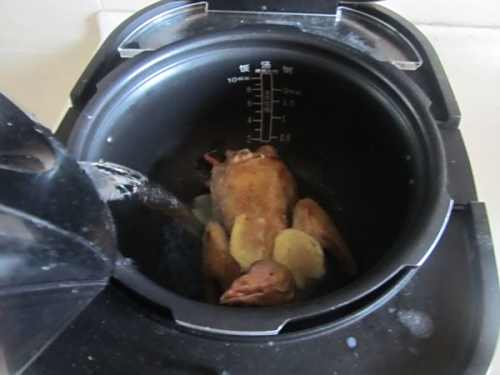 再加盖按下煲汤功能键, 炖煮四十分钟;