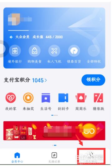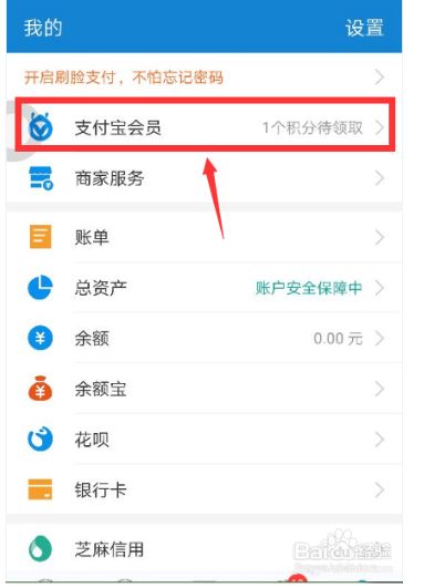 点开我的以后,在页面中找到并点开“支付宝会员”;