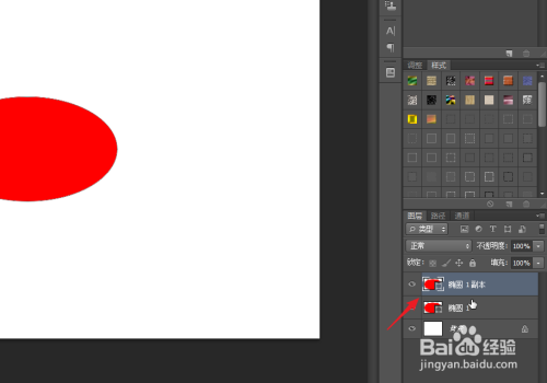 我们为下图中的椭圆制作高光,首先我们将椭圆的图层进行复制,放置在上层。