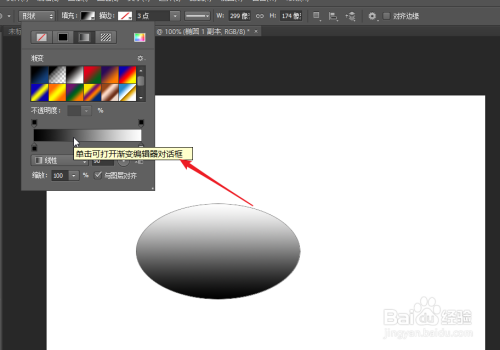选择见面之后,我们可以看到如下图所示界面,我们点击打开渐变编辑器对话框。