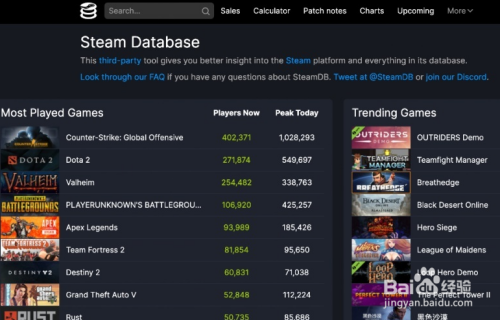 打开Steam Database,搜索要买的锁区游戏名,打开游戏的商品信息页面。
