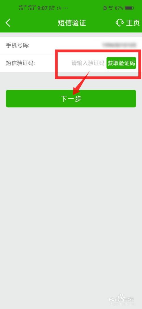 在这里输入开户预留号码接收到的验证码,点击下一步。