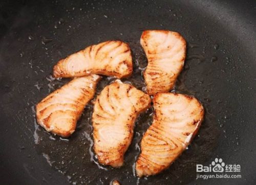 把三文鱼肉放入煎锅 煎2面黄,加入适量水文火烧15分钟
