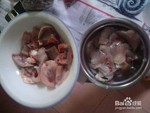 首先将三文鱼骨 洗干净 加入生姜 料酒 柠檬汁 腌制15分钟