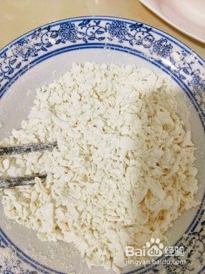 4一点点的加水进去搅拌,一定要一点点的加水,不要一下子倒好多,搅拌成这种颗粒状就差不多了,喜欢细一点点的就少一点水,搅拌时间长点。