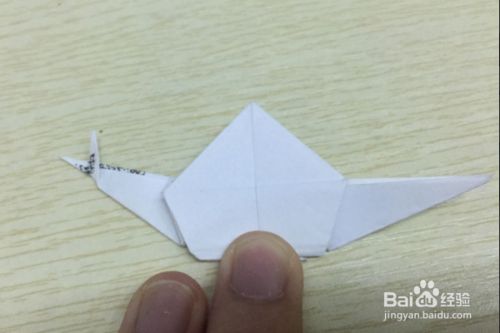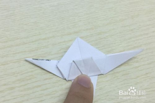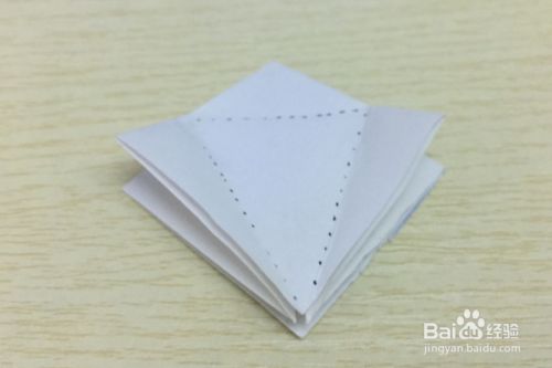 然后将三角形的顶端向上翻起,同样的方法 ,对侧的一边也是进行翻折,见下图展示。