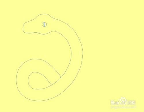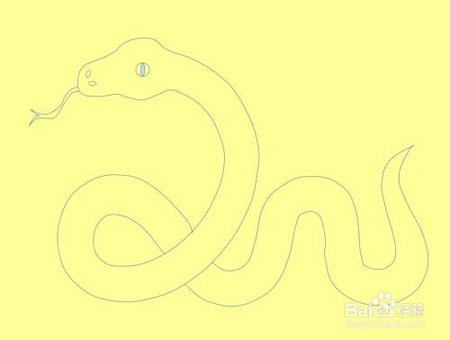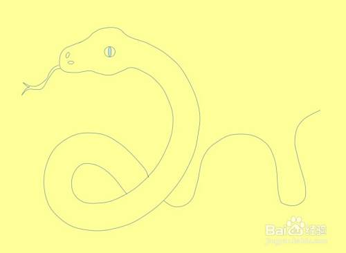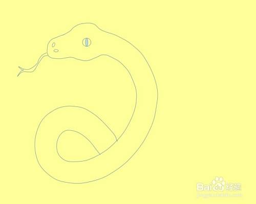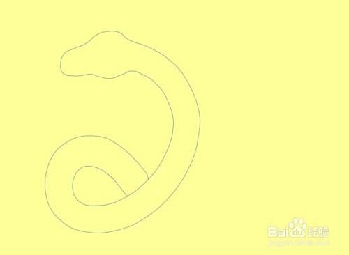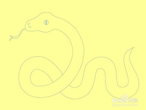 在蛇头部的线段起点处,向下延伸,画出蛇背部的曲线,注意蛇身体的弯曲度。
