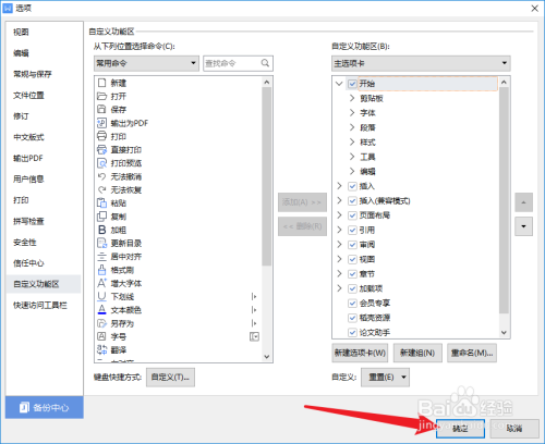 点击选项界面左侧菜单中的【自定义功能】选项。
